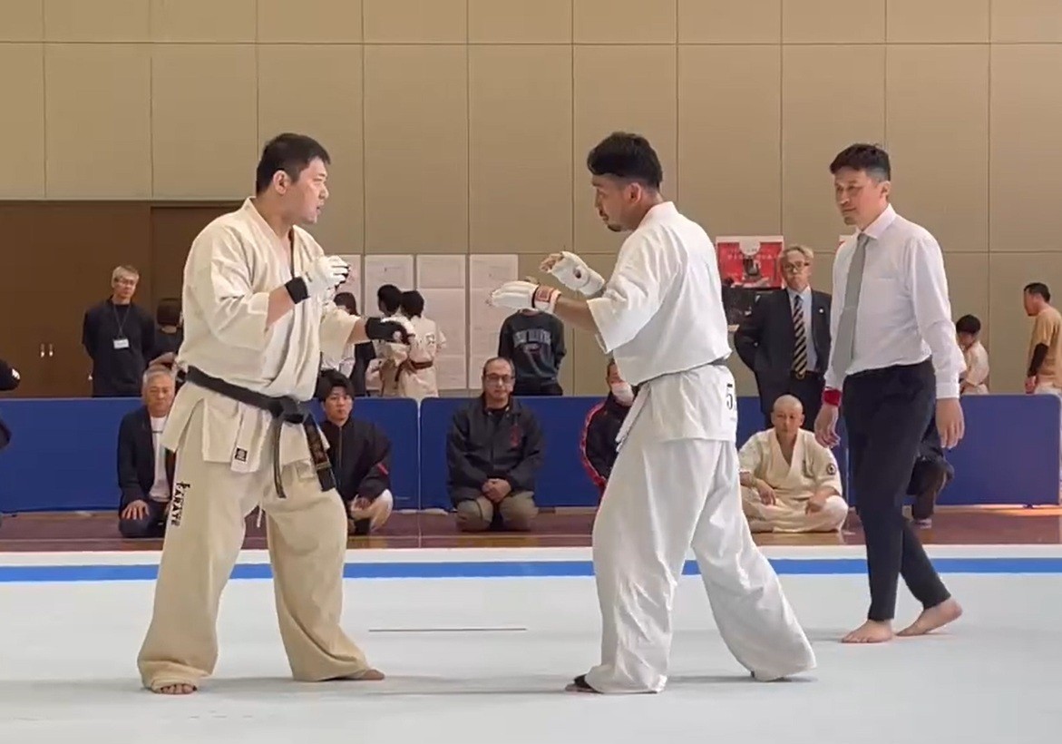 2025年9月14日(日) 城市さんが正道会館の大会に出場されました。 城市さんと対戦する予定の方が棄権されたので、戦わずして優勝となりました。 念願の優勝を手にはしたものの、やはり戦って優勝を手に入れたいと思う気持ちは、空手をやっている者なら誰でもあるはずです。 今回、試合ができなかったためエキシビジョンという形で正道会館の方と城市さんは対戦されましたが、見事なサバキで相手を転がしておられたので、試合ができていれば優勝を戦って手に入れることが出来ていたかもしれません。 これで満足はしていないはずなので、次回こそは城市さんの実力で勝ち取って頂きたいと思います! |